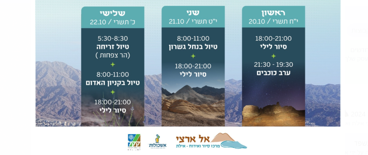 כל הפעילויות מודרכות ע"י מדריכות מקצועיות ומוסמכות ממדרשת אל ארצי אילת
