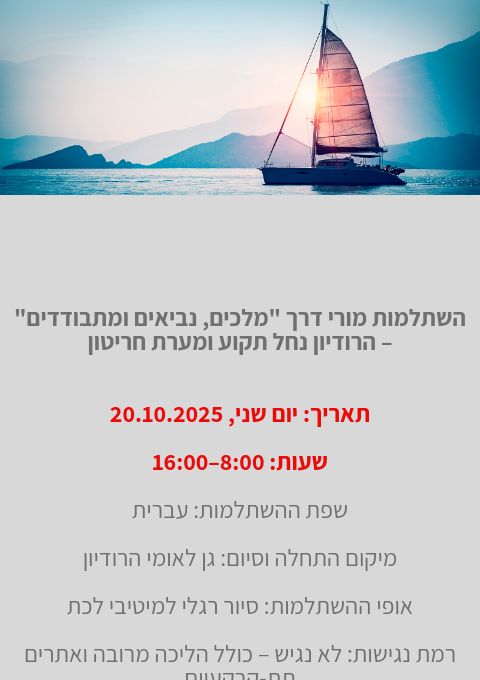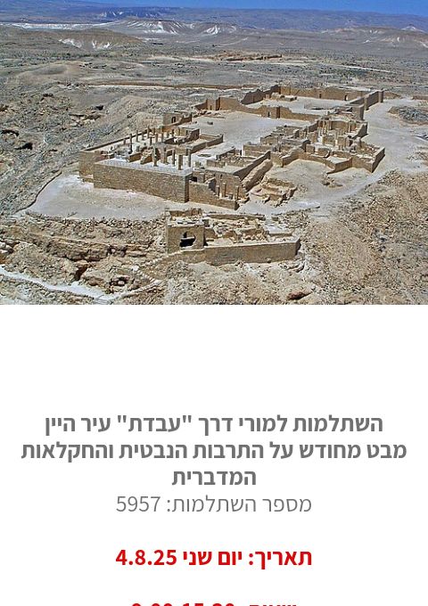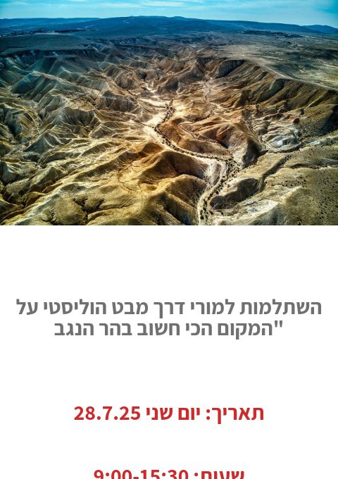 סדרת השתלמויות המיועדת להעמיק את הידע המקצועי של מורי הדרך בישראל, תוך שילוב של מחקר עדכני, תצפיות שטח, ואתרי מפתח ברחבי הארץ.