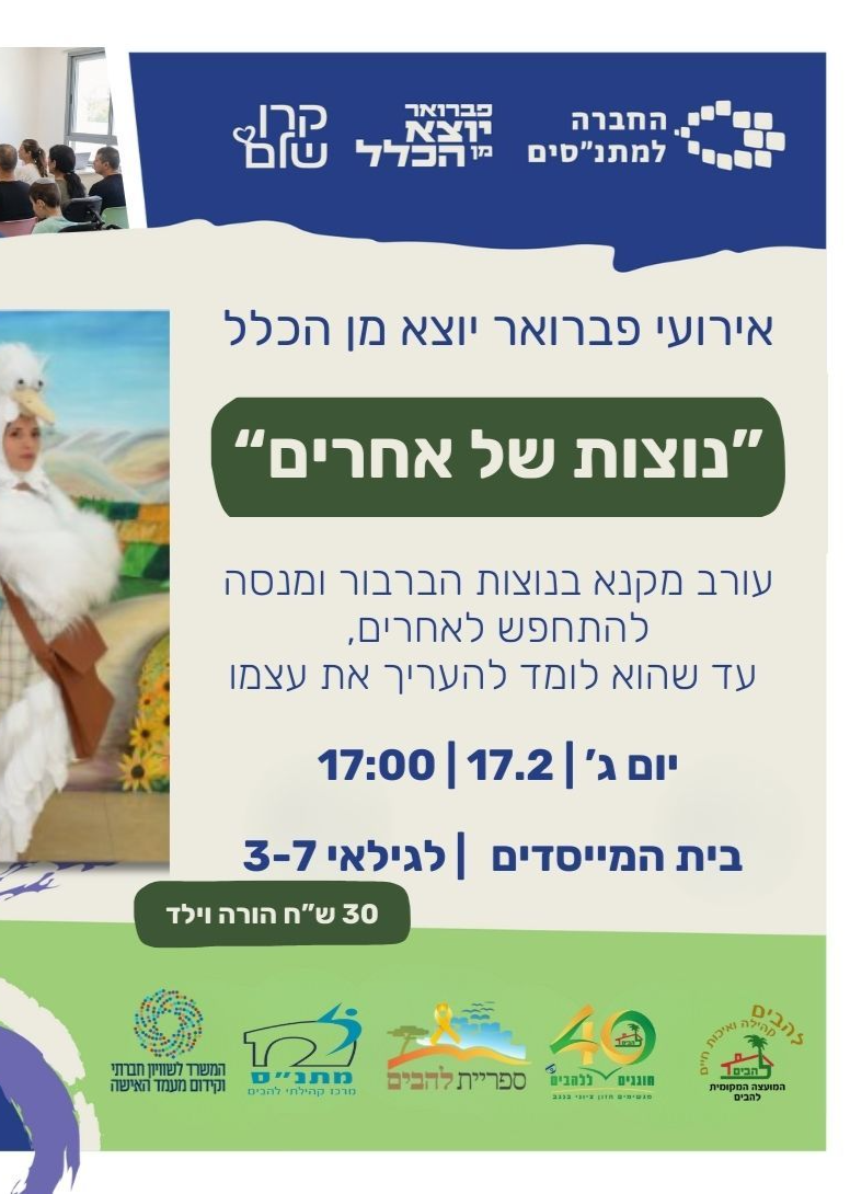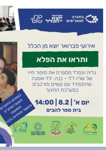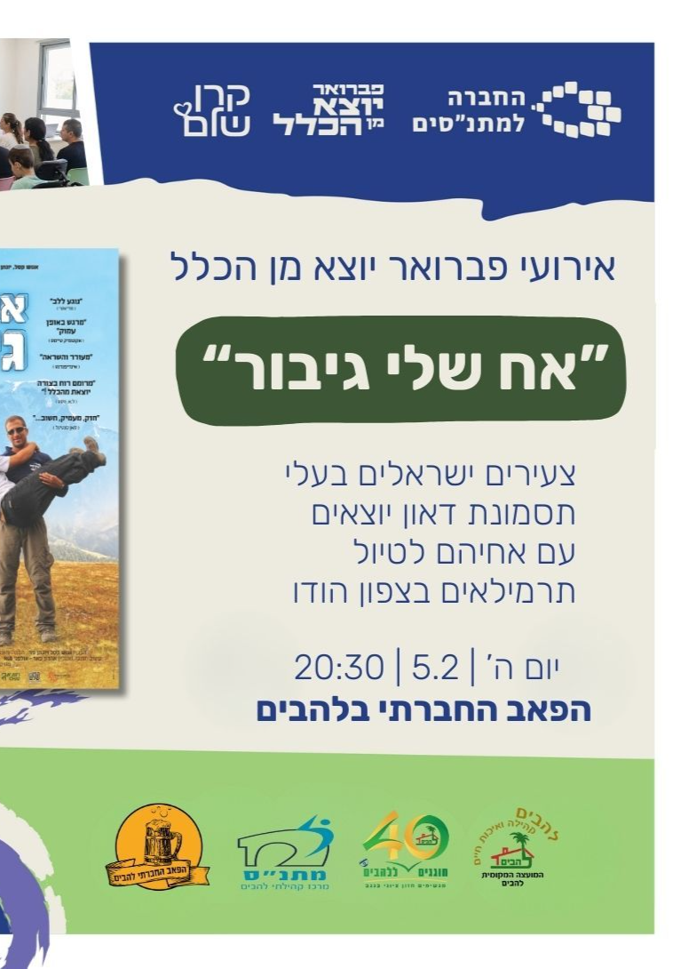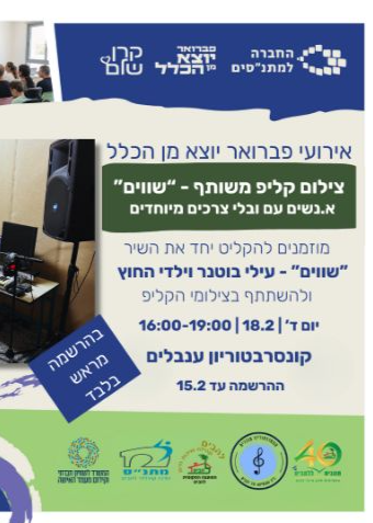 מיזם ארצי של החברה למתנ"סים המוקדש להעלאת המודעות ליצירת חברה מכלילה, המשלבת אנשים עם מוגבלויות, דרך אירועים קהילתיים, סדנאות, הופעות ויצירה משותפת, שמטרתם לחבר בין אוכלוסיות שונות ולשבור סטיגמות. המיזם מתמקד בחיבור אנושי, קידום שוויון ומתקיים ברחבי הארץ באמצעות פעילויות כמו חוויות בחושך, הצגות ומופעים, תוך שיתוף פעולה של אנשים עם וללא מוגבלות.