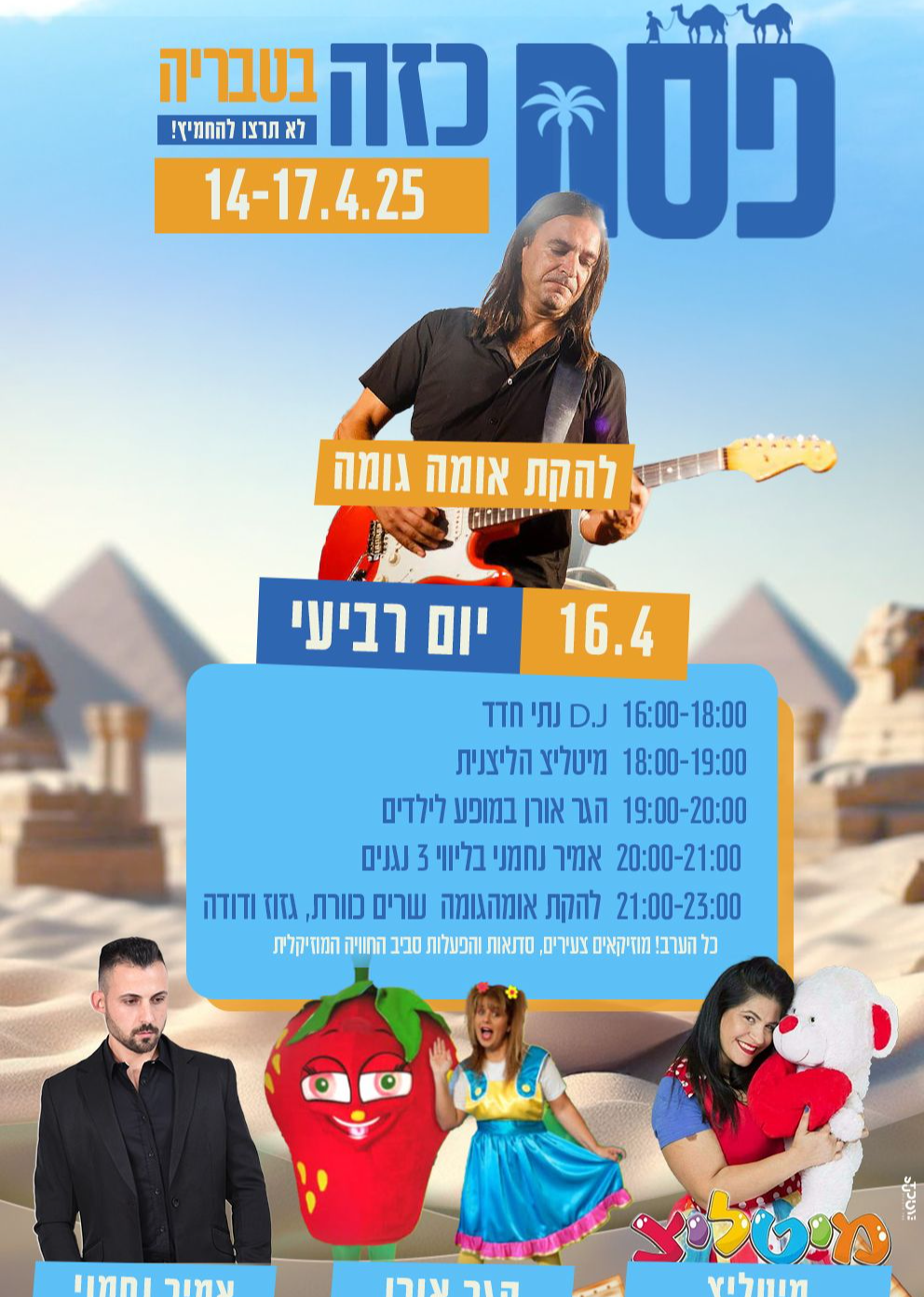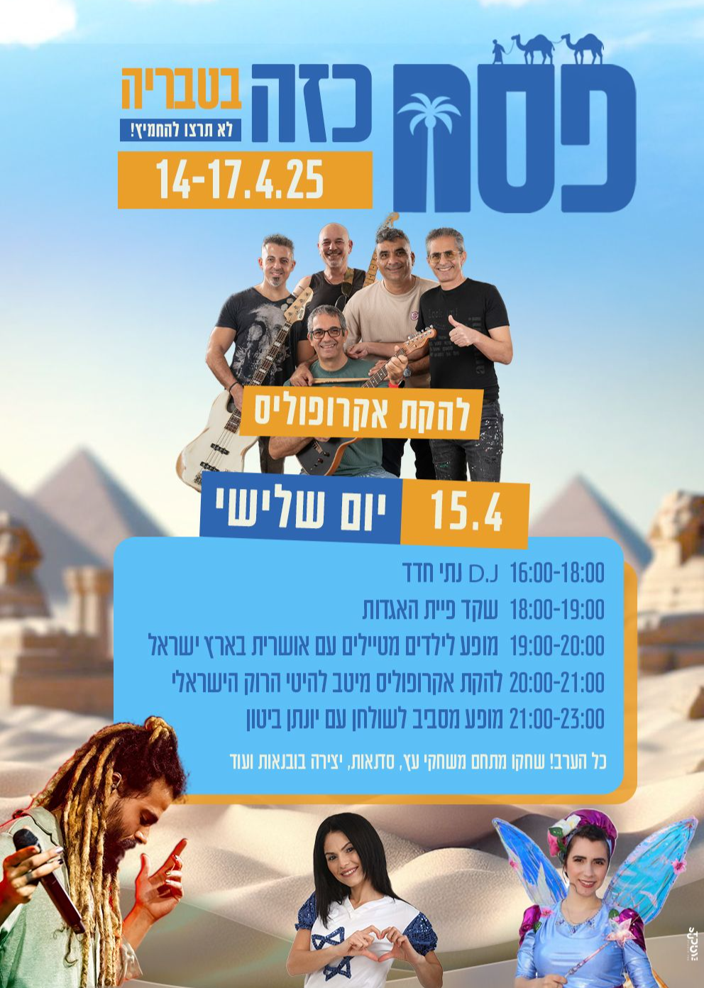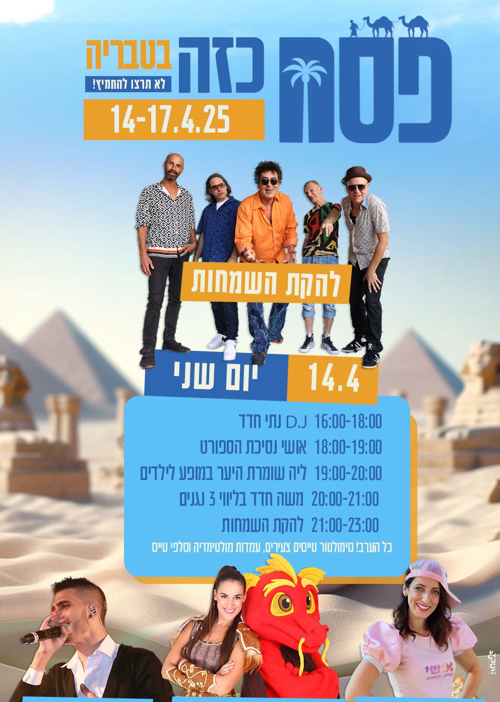 השנה, טבריה מזמינה אתכם ליהנות מחגיגת פסח בלתי נשכחת עם שלל אטרקציות, הופעות חיות, פעילויות לכל המשפחה ושווקים ססגוניים –